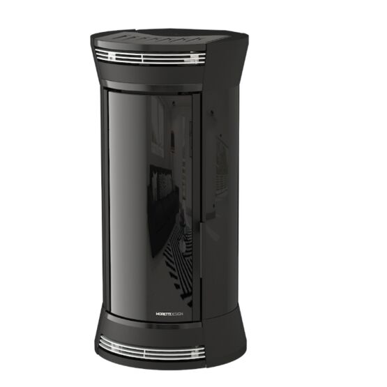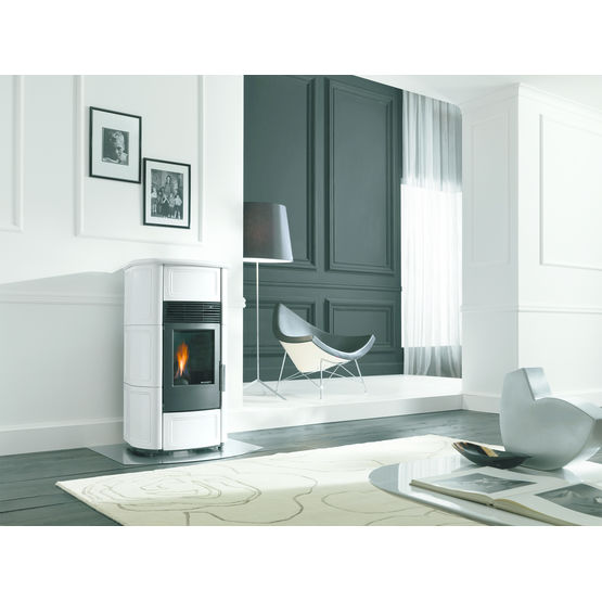 Poêle à granulés de bois de 9,3 kW de puissance et 90 % de rendement moyen. Combustion étanche (entrée d'air indépendante) des granulés de bois. Chauffage par rayonnement direct et soufflage d'air chaud par ventilateur et ouïes frontales en partie haute et frontale du poêle. Contrôle des fonctions par carte électronique et réglage de la puissance, vitesse du ventilateur et température par tableau de commande. Mise en œuvre possible sur ventouse.