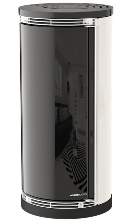 Le design du poêle est moderne et élégant, avec une forme cylindrique en verre, un TRIPTYQUE en acier inoxydable et la possibilité de choisir entre 5 couleurs différentes pour s'adapter à votre style. Son MAGICAL GLASS offre un vrai spectacle lumineux en visualisant l’intérieur de la chambre de combustion, une fois la flamme est allumée.