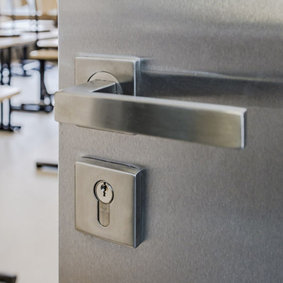 La poignée de porte Stockholm a su montrer sa fiabilité en 2017. En effet, notre modèle a été sélectionné pour la rénovation d'un lycée et d'un campus de Saint Denis. DESIGN-MAT ® a été retenu pour la qualité et la finition de ses produits, pour son excellent rapport qualité / prix et la disponibilité immédiate de sa poignée de porte Stockholm. En effet il s'agissait ici de fournir 900 béquilles de porte dans un délai court, pour une utilisation fréquente.