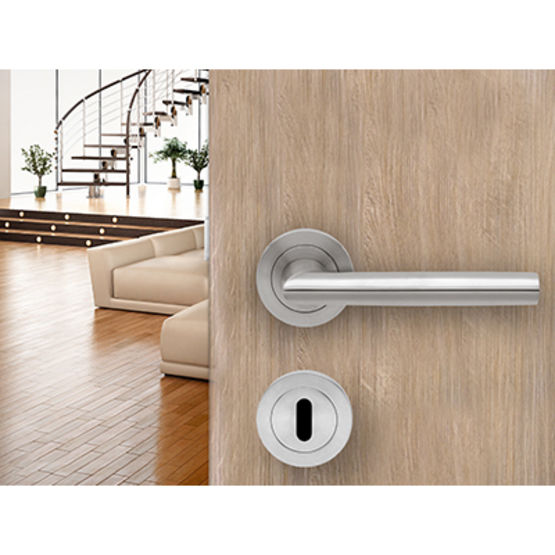 Poignées de porte en inox 304 sur rosace angulaire catégorie 3 ou 4 | ER37 Verona