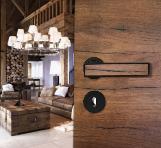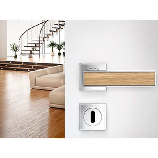 La poignée peut être montée sur la rosace trois pièces du fabricant ou sur la rosace ou plaque Plan Design, ronde ou carrée. Plus de 100 combinaisons sont possibles.