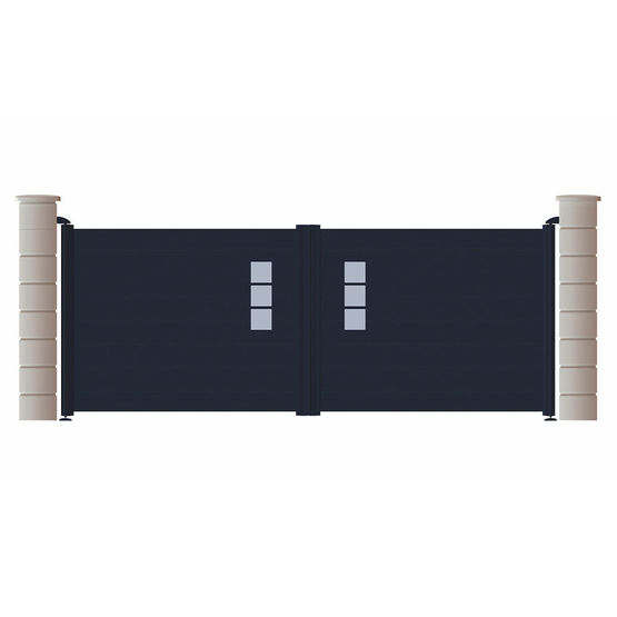 Portail aluminium aux lignes épurées en version battante ou coulissante | Portail alu design TOLBIAC Bleu