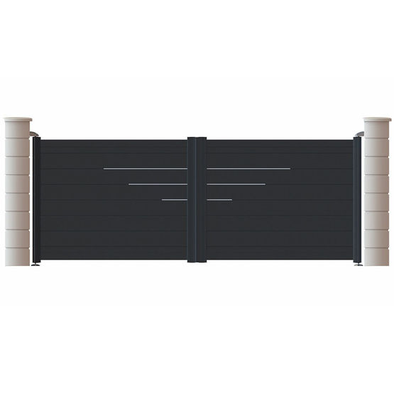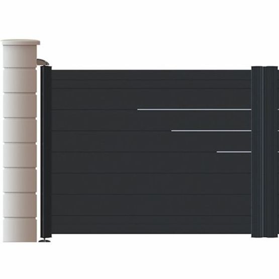 Portail aluminium battant ou coulissant à décor filaire brossé | Portail alu design TOLBIAC Gris