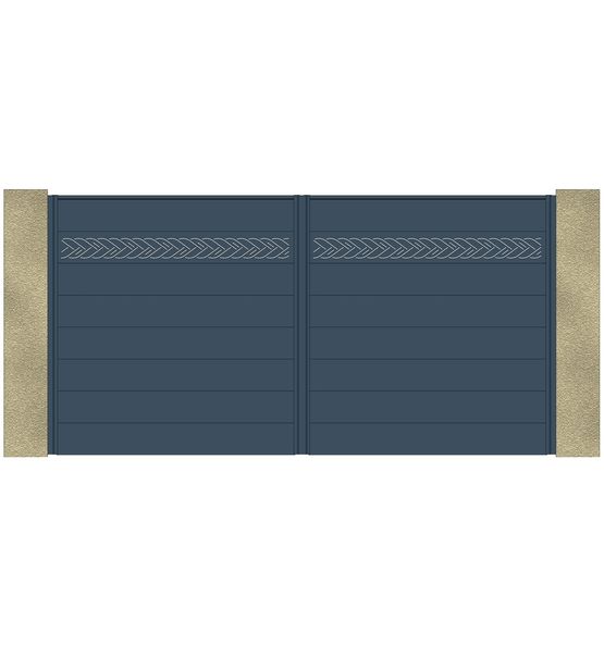 | Accessoires : | Gond orientable réglable 2 points de fixations laqué X 4 Sabot central inox hauteur 50 mm X 1 Arrêt à pompe à sceller pour le maintien en ouverture X2 Sabot central inox hauteur 50 mm avec basculeur X1 |