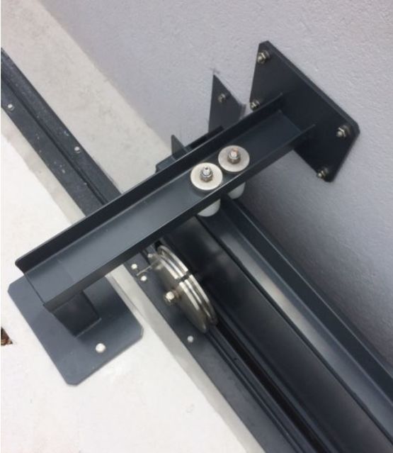 Le portail étanche comporte un vantail qui coulisse grâce à des roulettes guidées sur le seuil, ainsi que des galets réglables qui permettent le guidage en partie haute.