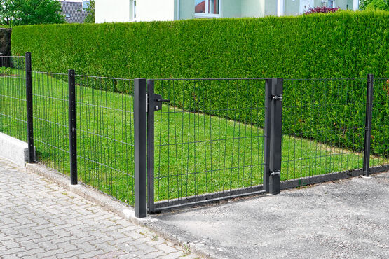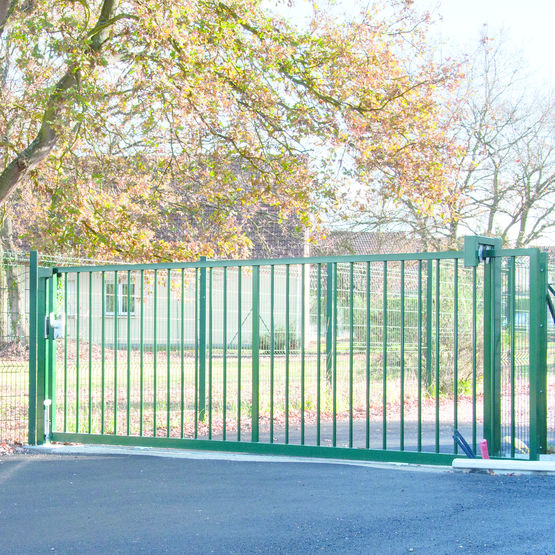 Ce portail en acier se distingue par sa résistance à l'abrasion et aux UV.
