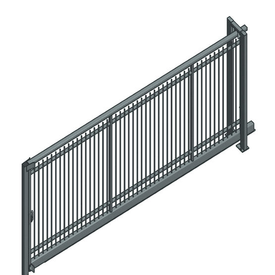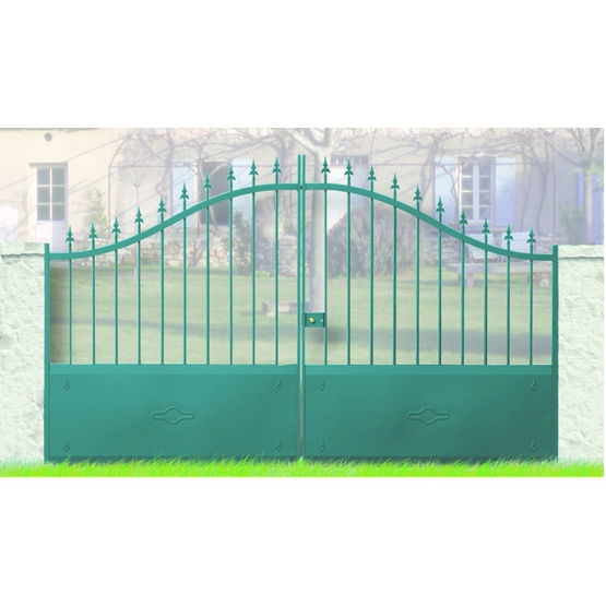 Cet éléme,t d'aménagement extérieur est proposé en forme droite ou bombée et en modèle battant ou coulissant. Disponible dans une hauteur de 2 000 mm, ce portail classique s'adapte à tous les environnements puisqu'il est polyvalent, résistant et flexible. Une serrure de style fer forgé, une gâche plate et une butée de sol en aluminium à vis sont insérées.