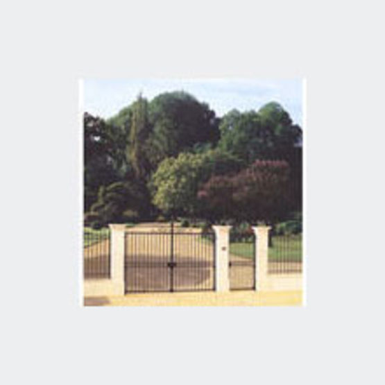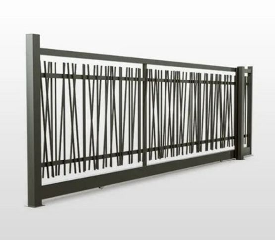 Cet élément d'aménagement extérieur est fourni avec une serrure de style fer forgé. Une gâche plate et une butée de sol en aluminium à vis y sont également intégrées. Sa hauteur est de 2 000 mm. Il est disponible en forme droite et en 2 modèles, à savoir battant et coulissant.