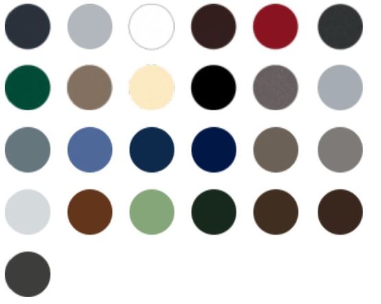 | Couleur : | gris ; noir ; vert ; jaune ; bleu ; Plus de 300 coloris disponibles dont 25 RAL sans plus-value |
