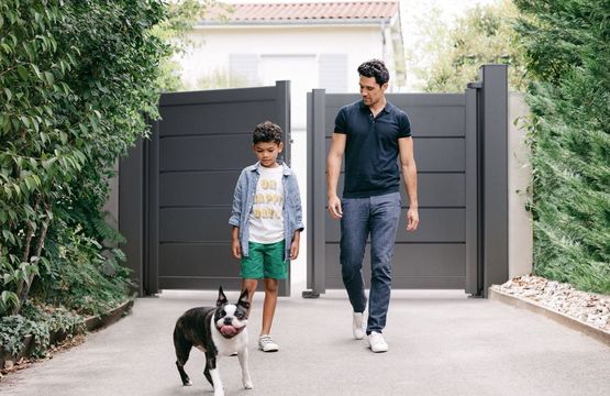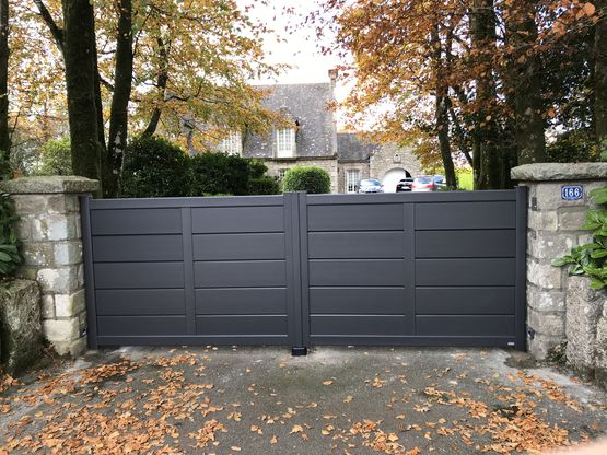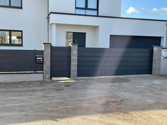 Ce portail aluminium au design contemporain, disponible en version battante ou coulissante, s’adapte parfaitement à votre propriété. Il peut être assorti à une clôture et à un portillon pour créer une entrée élégante et harmonieuse, idéale pour une maison individuelle ou une résidence.
