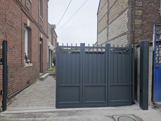 Conçu pour les petites entrées, ce portail se démarque par son système de coulissement le long du mur, éliminant ainsi la nécessité d'un refoulement latéral. Cette caractéristique astucieuse optimise l'espace disponible et simplifie l'installation même dans les environnements les plus restreints. »