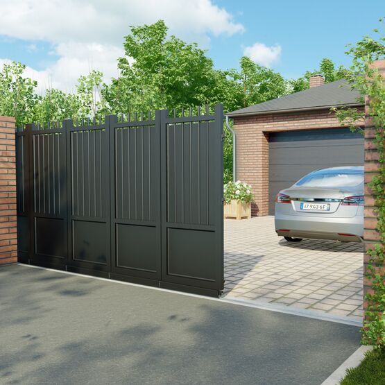 Portail sectionnel en aluminium jusqu'à 6 m de largeur adapté aux petits espaces