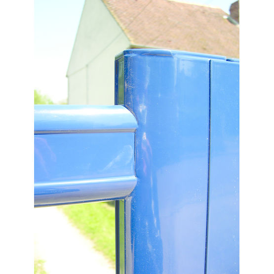 | Caractéristiques techniques : | Sections : 100 x 60 mm (cadre), 86 x 41 mm (traverses),80 x 20 mm (barreaudage), 16 mm (ép panneaux).Dimensions maximales (L x h) : 420 entre poteaux x 200 cm.Mise en ¿uvre : pivot (bas) et gond chimique (haut). |