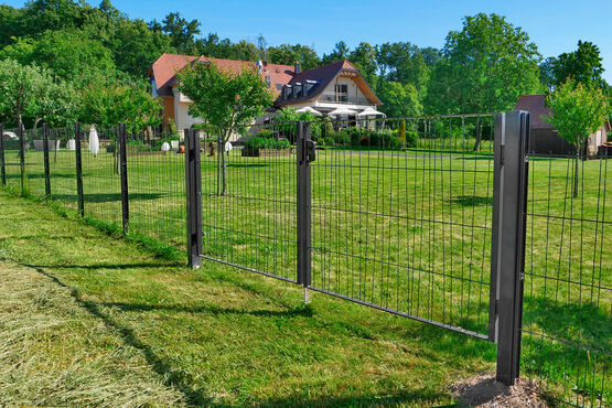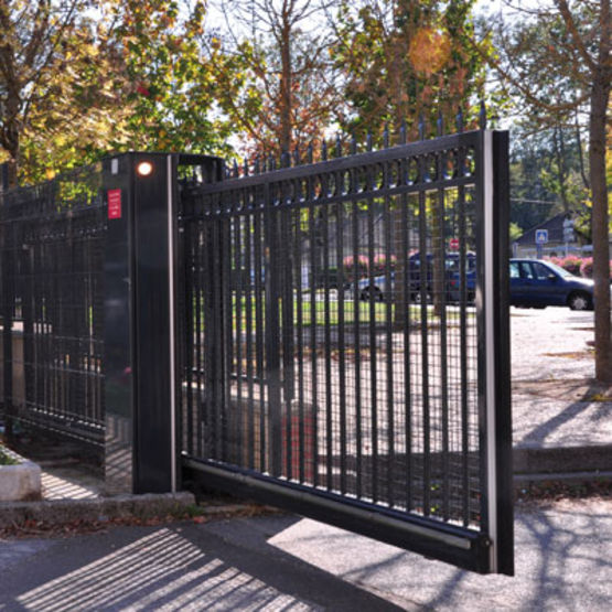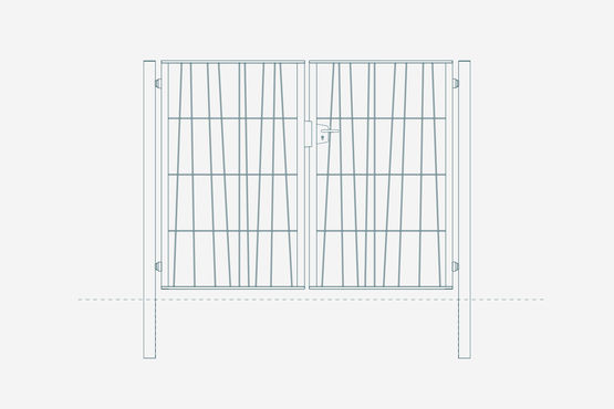 | Caractéristiques techniques : | Piliers : 80 x 80 mm ou 100 x 100 mm Cadre : montants 50 x 50 mm et lisses hautes et basses de 50 x 8 mm Remplissage : panneaux soudés Domino 5 mm / Maille déstructurée 300 mm Ouverture : 180° poussant droit (réversible) |