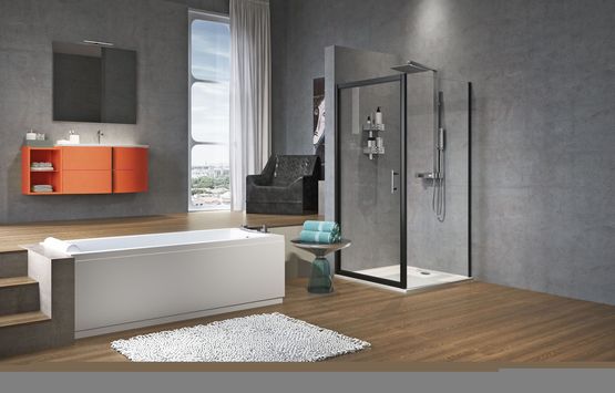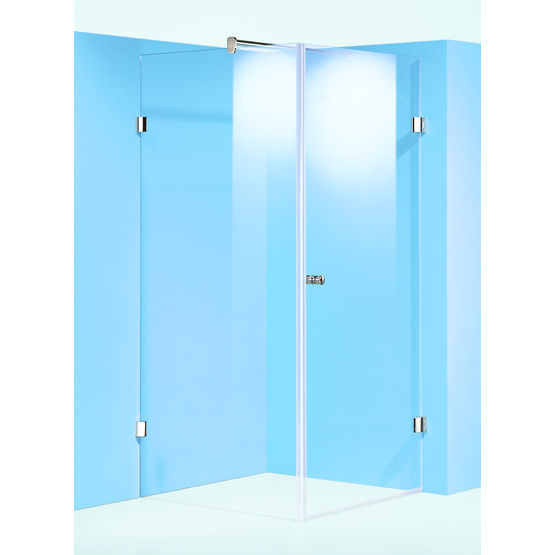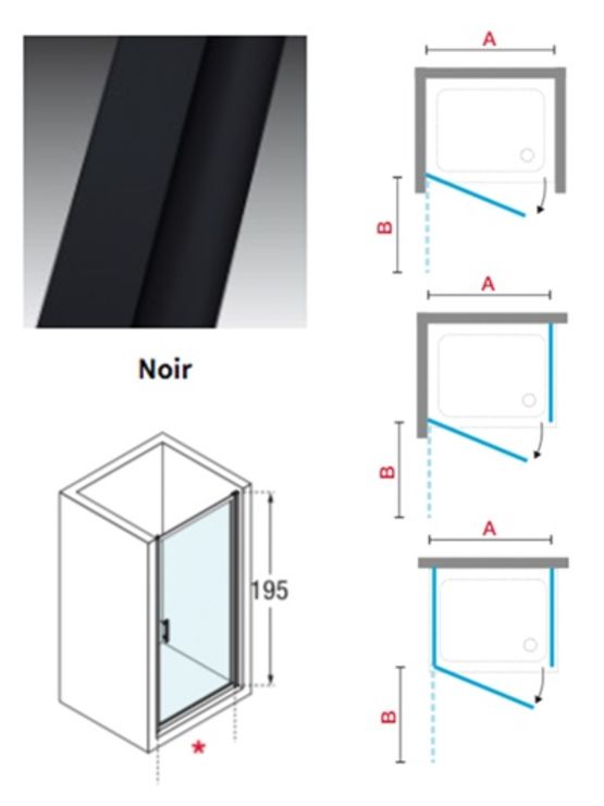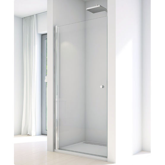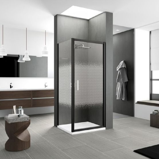 Porte de douche pivotante en verre transparent avec des profilés noirs | ZAPHYROS G