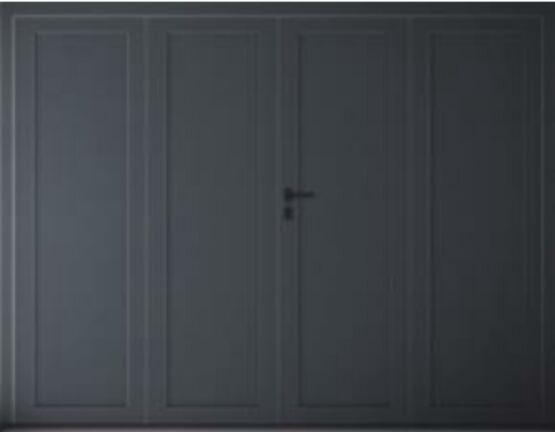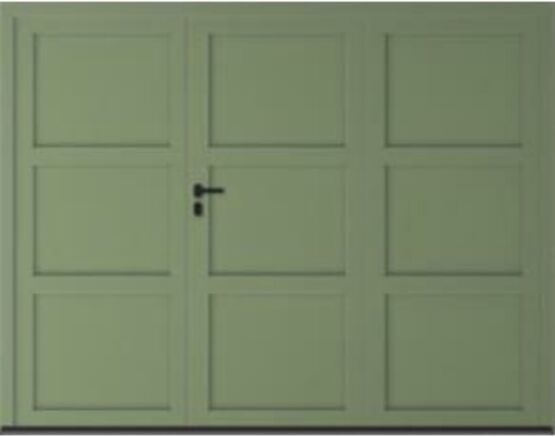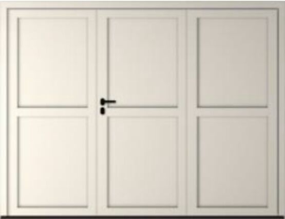Cette porte battante de garage est composée d’un cadre à rupture de pont thermique, des panneaux sandwich isolant de 32 mm, des doubles charnières réglables, des poignées robustes et design et une serrure 3 points pratiques et rassurantes.