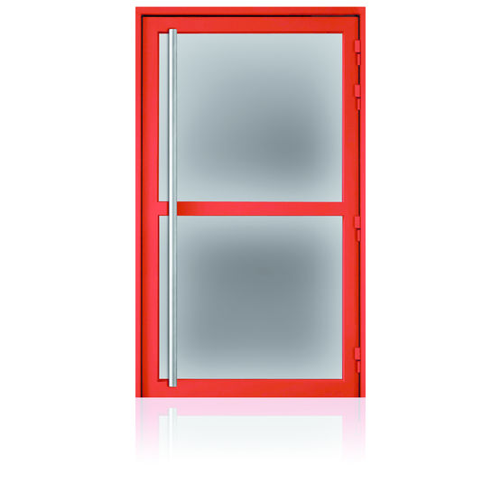 3. Esthétique personnalisable : Avec son cadre rouge vif et la possibilité de choisir parmi divers vitrages, gâches électriques et ferme-portes, la porte Rhéa s'adapte à différents styles architecturaux.
