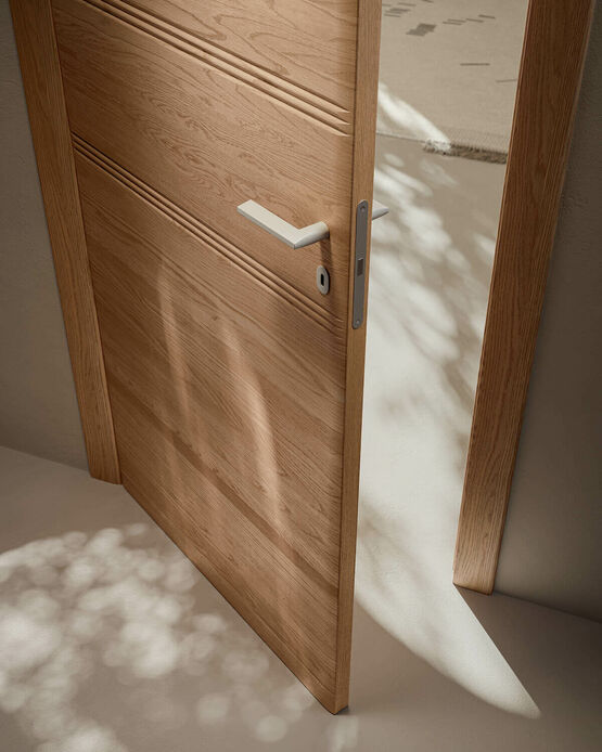 Dans l’histoire du Groupe Garofoli, il y a des collections qui représentent de véritables jalons. L’un d’entre eux est IO, que Fernando Garofoli a conçue lui-même en 1998, en relevant le défi d’utiliser le bois massif, traditionnellement associé aux portes de style classique, pour une ligne de portes modernes. Aujourd’hui, après 25 ans de succès commercial, Fernando Garofoli a décidé de relancer le défi en renouvelant l’esthétique globale de la glorieuse collection de portes « Io », en ramenant ses caractéristiques sur les rails d’un design plus minimal, linéaire, avec des formes moins arrondies. Une ligne de portes qui est également l’interprète d’une grande attention à l’environnement : le chêne à partir duquel elle est réalisée est en effet certifié FSC et PEFC, la garantie maximale de durabilité environnementale, économique et sociale de la chaîne d’approvisionnement. Avec le restyling de la collection, les portes s’enrichissent de pantographes profonds, qui créent des gravures 3D sur la surface de la porte. Des décorations raffinées et contemporaines qui soulignent la modernité de Io 2023. Dotée d’accessoires de dernière génération (charnières escamotables et serrure magnétique), la collection IO est disponible dans toutes les finitions en bois de chêne de la gamme Garofoli, des plus claires, comme le Chêne Ice et le Chêne Soie, aux plus décidées et sombres, comme le Chêne Noir Profond. Pour les amateurs de finitions laquées, IO est également disponible dans toutes les finitions de la gamme RAL.