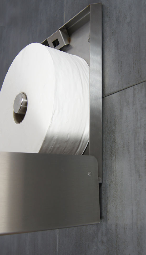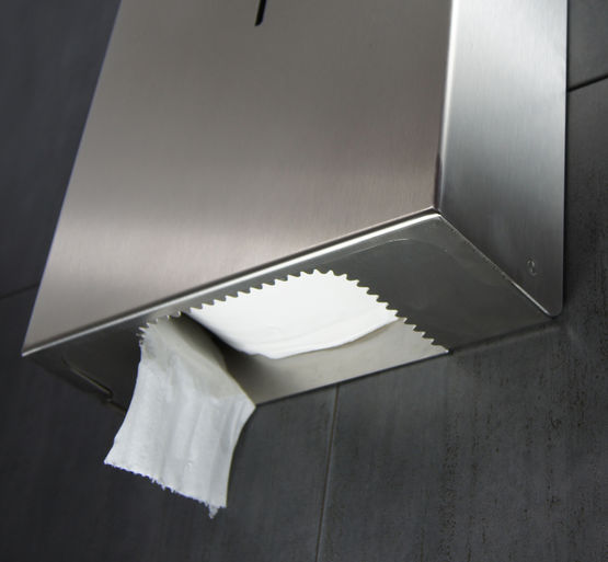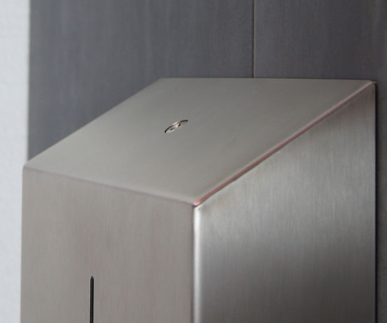 Design contemporain pour les espaces sanitaires collectifs avec fente de contrôle niveau papier et serrure encastrée.