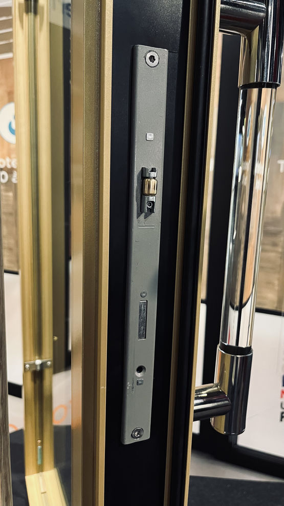 Porte vitrée coupe-feu aluminium équipée d'une serrure à rouleau | E30 - EI30 - EI60