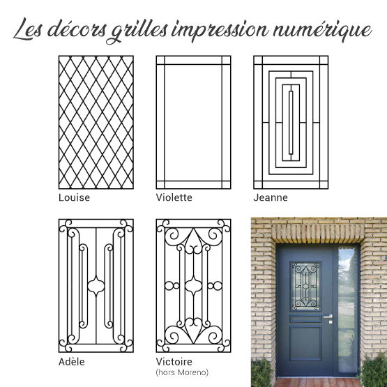 Nous proposons également, sur les modèles MORENO et EDISON, des grilles en impression numérique sur un triple vitrage feuilleté retardateur d’effraction.
