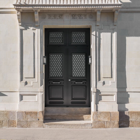 Sur les modèles NOBEL et SPENCER, le quadruple vitrage viendra renforcer la sécurité et accueillir en son centre un de nos trois modèles de grilles décoratives en fonte d’aluminium.