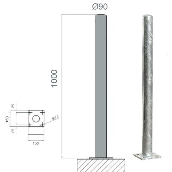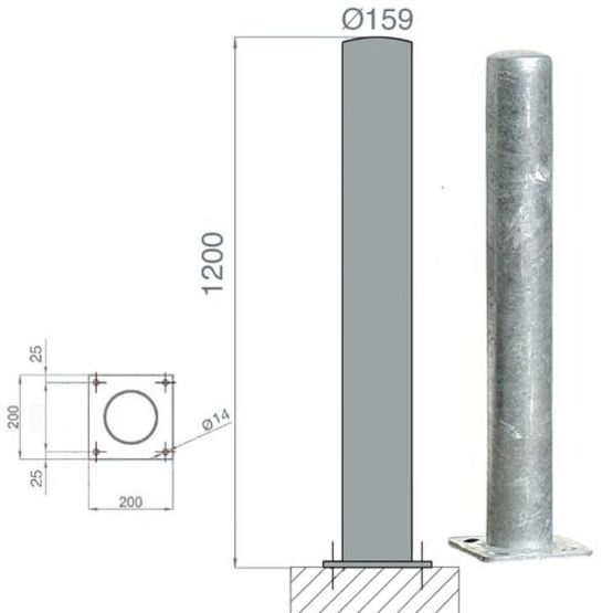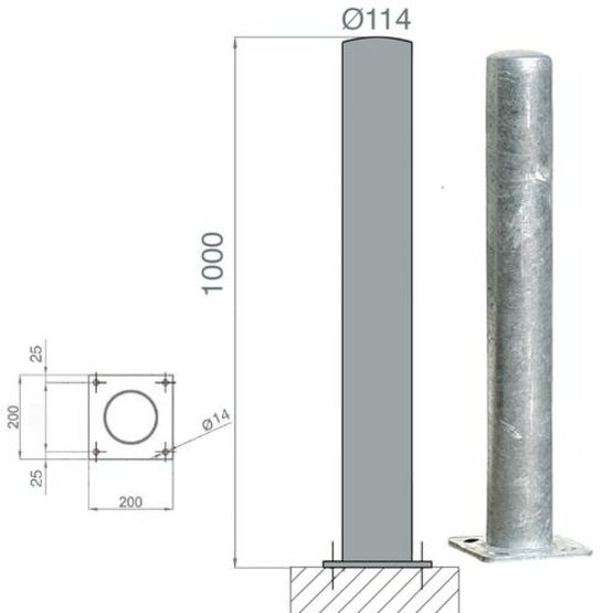 Poteau de protection acier galva Diam.90 - 114 - 159mm | POTG