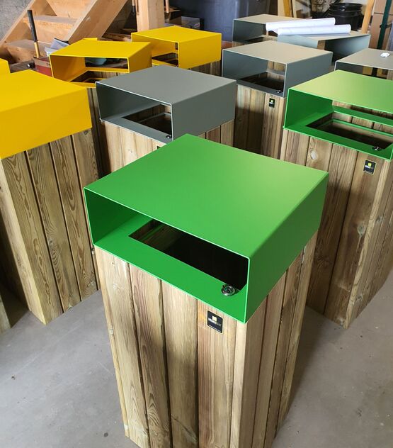 - Poubelle urbaine en bois pour collecte de déchets