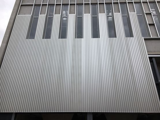Maintenu par fixations traversantes sur une rive et emboîtés sur l'autre, ce profilé permet d'avoir une surface avec un aspect continu, toutes les pièces de fixations étant invisibles.
