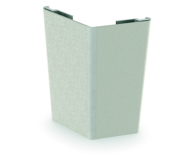 Profilé vertical à angle droit en résine acrylovinylique, teinté dans la masse, pour la réalisation de pare-chocs de poteaux ou d'angles de murs.
