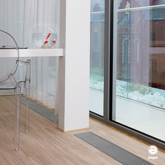 | Mise en oeuvre : | pose sur consoles avec grille de recouvrement et caches latéraux démontables. |