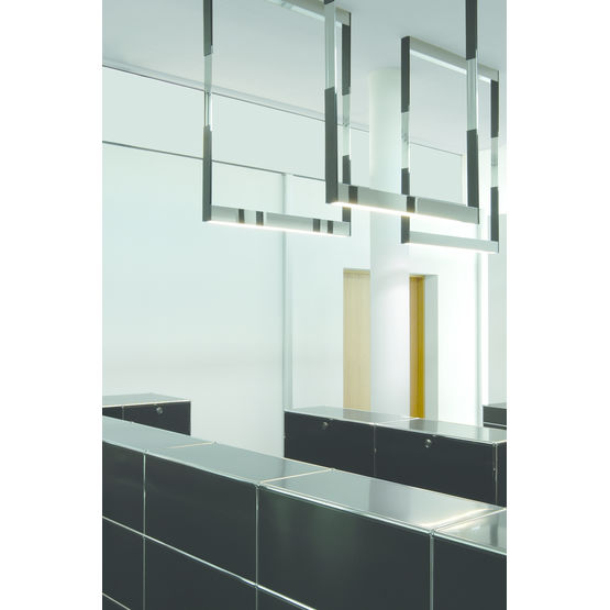 1. Modularité: Le rail d'éclairage Maxos permet de créer le système d'éclairage idéal avec des réflecteurs variés, des options de montage telles que suspension et plafonnier, ainsi que des longueurs ajustables de 123 à 459 cm. Par exemple, ce système peut facilement s'adapter à un hall d'accueil ou à un espace de bureau.