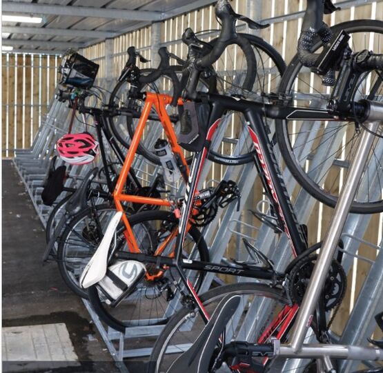 Cet arceau permet en effet d'attacher le vélo avec un cadenas, et ce depuis le cadre ou la roue AR. L'entraxe des places de vélos est de 305 mm. Il est même possible d'optimiser l'entraxe pour un confort augmenté, c'est-à-dire, 400 mm.