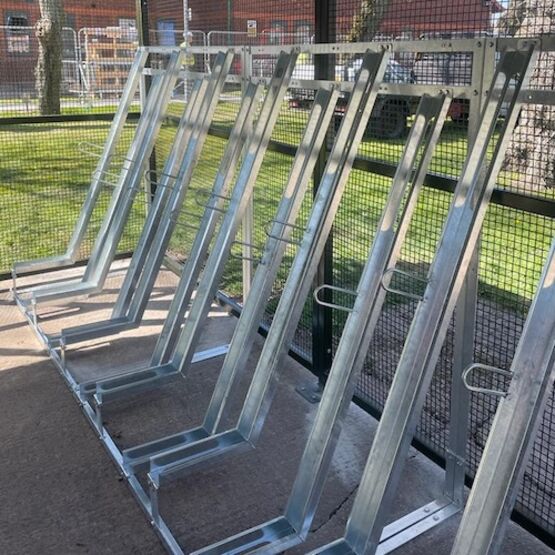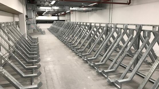 Particulièrement modulaire, ce rack galvanisé chaud peut être utilisé en extérieur ou intérieur. Les vélos de ville de longueur égale ou supérieure à 185 cm ne peuvent être stationnés du fait du positionnement des fentes de réception des roues.