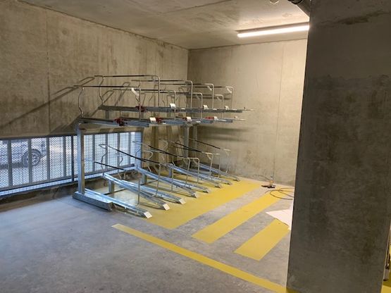 | Options : | finition époxy, fixation murale, fixation sur sol pentu, vélos en épi à 45°, vérins d'assistance, troisième niveau motorisé à fixer au plafond ou sur autre structure. |