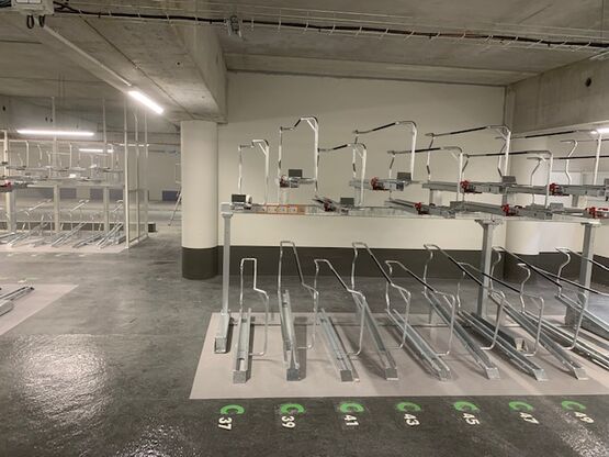 L’alternance de hauteur des places aussi bien en haut qu’en bas permet une excellente compacité tout en évitant d’entrechoquer les guidons