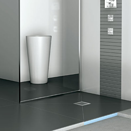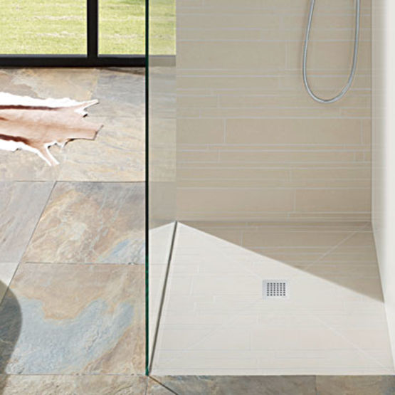 - Élément de douche de plain-pied à carreler intégrant un écoulement horizontal.
