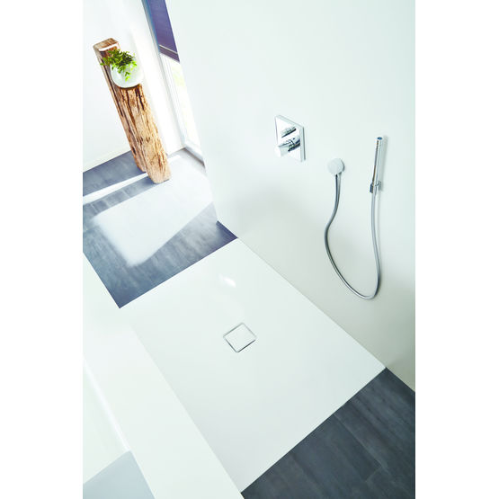 1. Design ultra-plat : Le receveur de douche Conoflat offre une insertion harmonieuse dans une douche à l'italienne, optimisant l'espace avec son profil bas, idéal pour des intérieurs modernes.