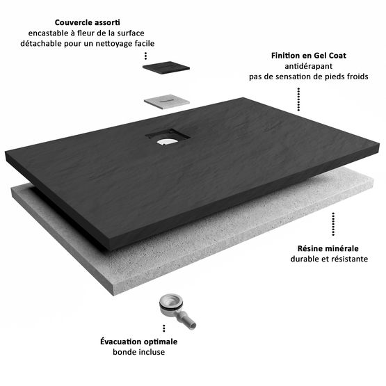Fiche technique Receveur de douche résine minérale