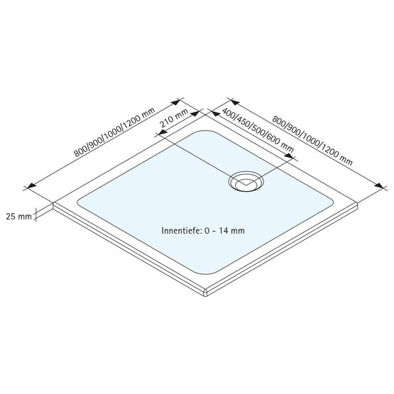 90 x 90 cm, 90 x 100 cm, 90 x 120 cm, 90 x 140 cm