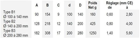 | Diamètre : | entre 97 mm et 448 mm - Raccordement |