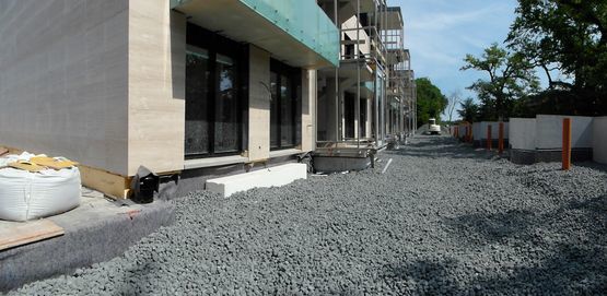 Grâce à sa structure cellulaire fermée, MISAPOR est jusqu’à 10 fois plus léger qu’un remblai traditionnel tout en conservant une résistance mécanique élevée. Cette légèreté permet de réduire significativement les charges sur les infrastructures existantes, notamment sur les parkings souterrains et les toitures végétalisées.