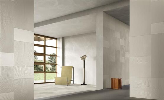 Grâce à des formats polyvalents (120 x 60, 60 x 60 et 60 x 30 cm), associés aux combinaisons de couleurs et de motifs, un système complet et modulable prend forme, offrant une multitude d’effets décoratifs en jouant à la fois sur les dimensions et les options design.