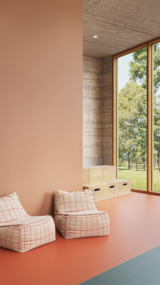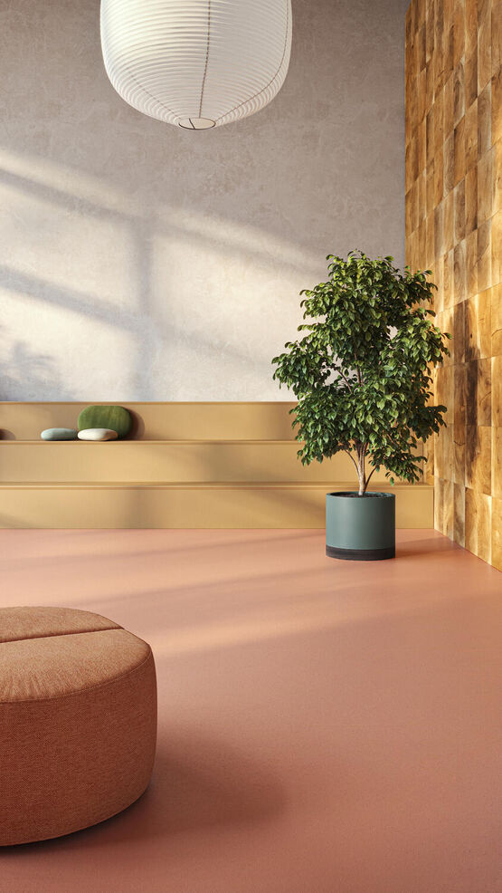 Adapté aux grandes surfaces, le revêtement Lino Materiale est proposé en rouleau (2 x ≤ 32 m), facilitant sa pose. Respectueux de l'environnement, il est recyclable après usage.