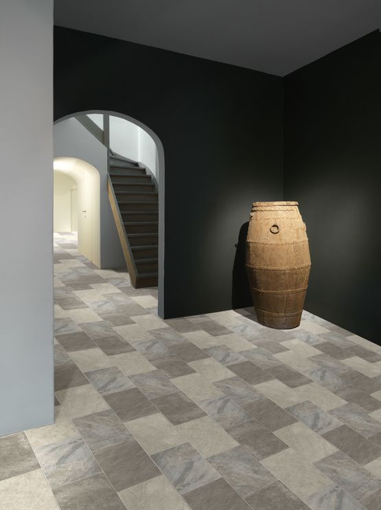 Le revêtement de sol souple Rimini est essentiellement fabriqué en vinyle avec une couche de support résistante garantissant un grand confort à la marche.