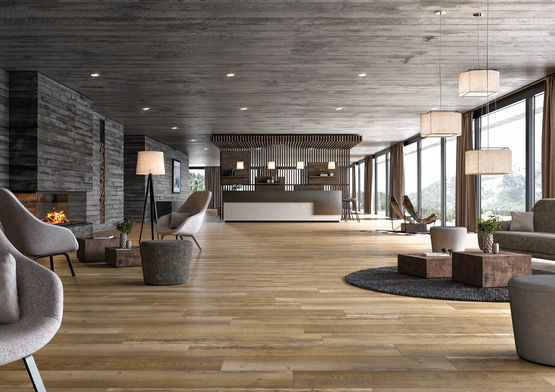 | Caractéristiques techniques : | 42 designs avec une finition bois, pierre ou métal en 12 rendus différents Disponible en lames, mais également en dalles grand format |
