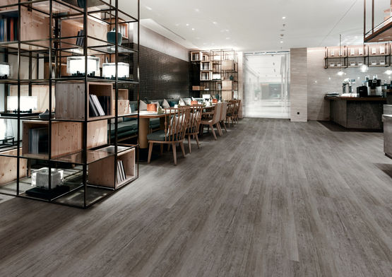 Les nouveaux décors en terrazzo, allant jusqu’à un micro-terrazzo avec des granulats fins, attirent également le regard. Au total, la nouvelle collection EXPONA COMMERCIAL propose 53 décors en bois authentiques, 18 décors en pierre modernes et 9 décors à effets.