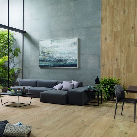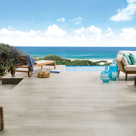 La collection existe en 3 formats, en lames de 25 x 150 cm pour les coloris unis et pour la version à motifs, en dalles de 59 ,6 x 59,6 cm (pour Noa et Eden) ou en lames de 45 x 120 cm (pour Ice et Desert). Pose intérieur et extérieur.