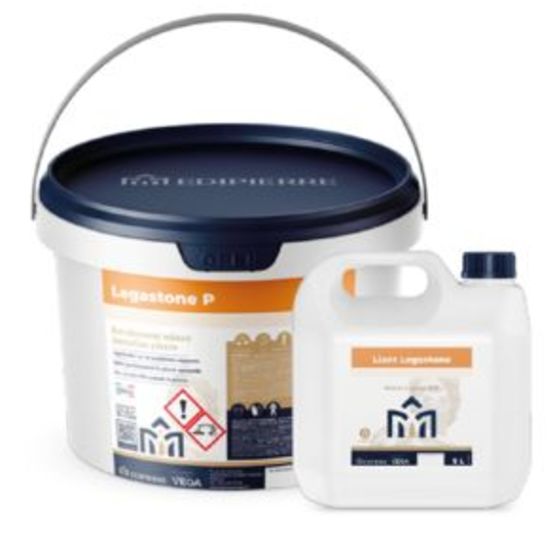 Le legastone P est disponible en kit de 20 kg de poudre + 5 L de liant.