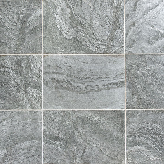 QUARTZITE SILVER GREY propose une surface de finition brossée aux douces tonalités grises et bleues révélant une palette contemporaine originale.